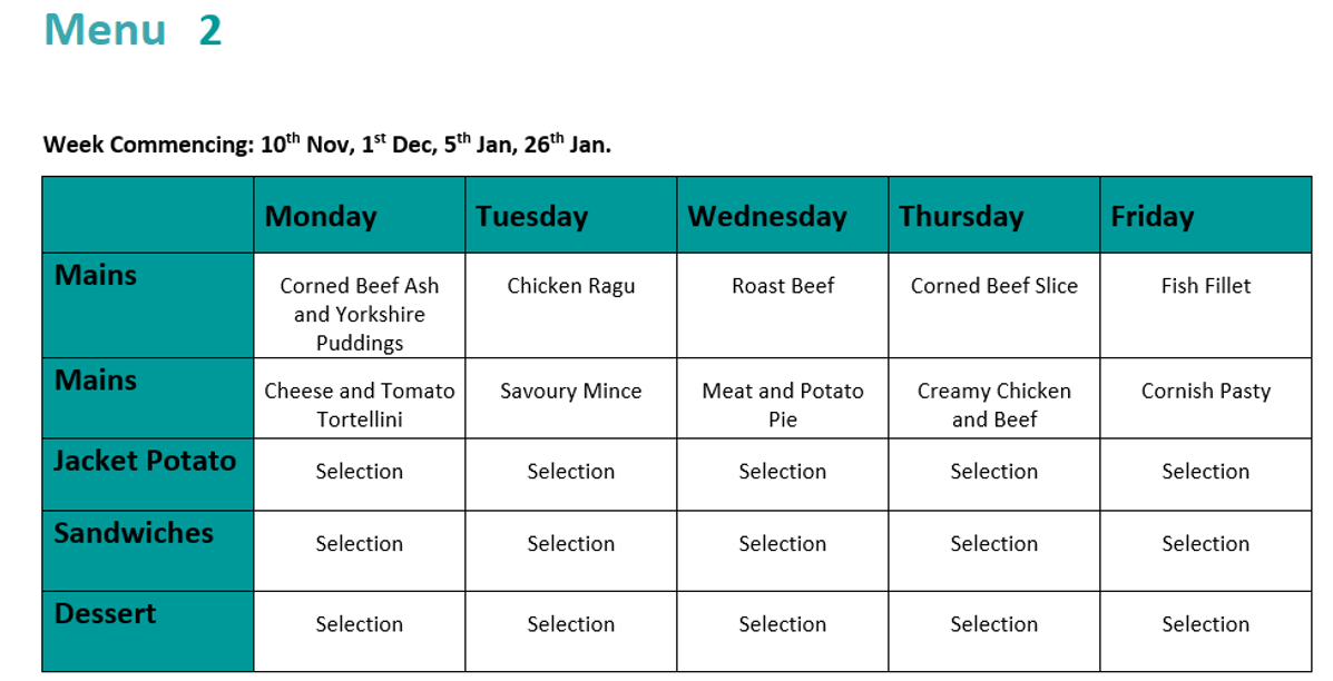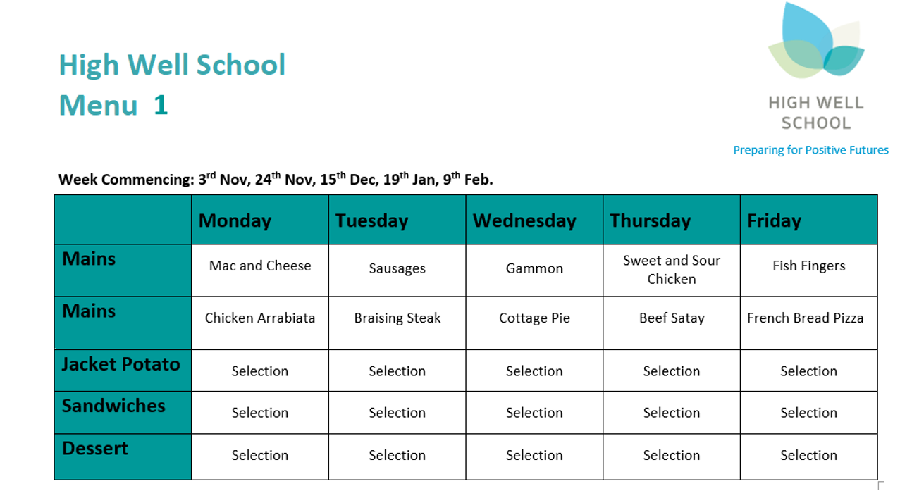 Here at High Well School our menus have been designed to provide a balanced and nutritional menu with healthy choices, our menus are revised twice a year to ensure variety.